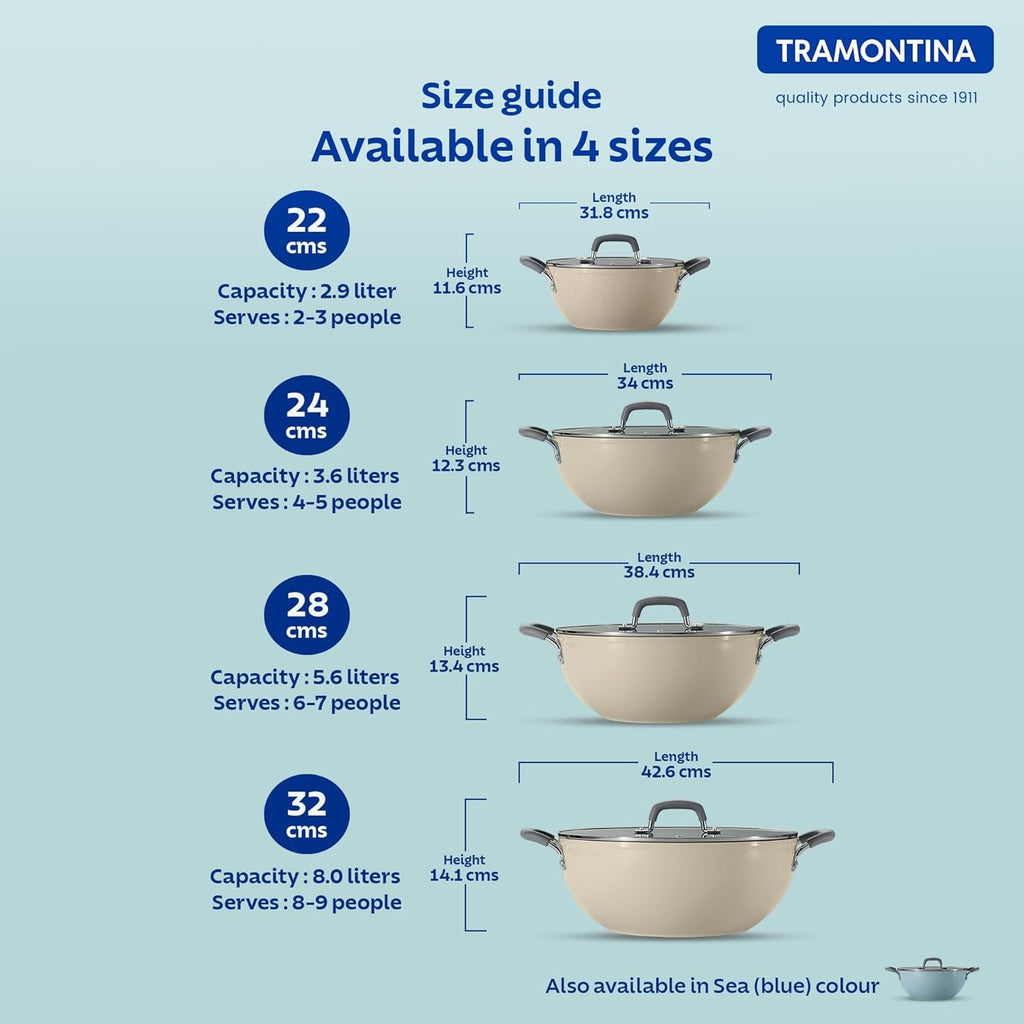 Tramontina Velo Cold Forged Aluminum Deep Kadai Cookware BEIGE